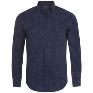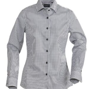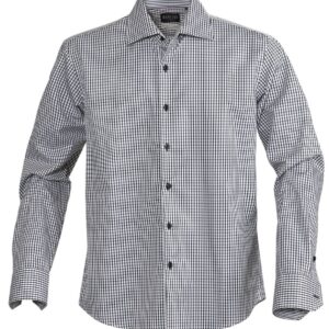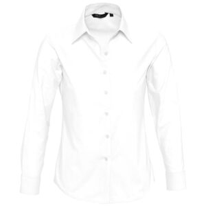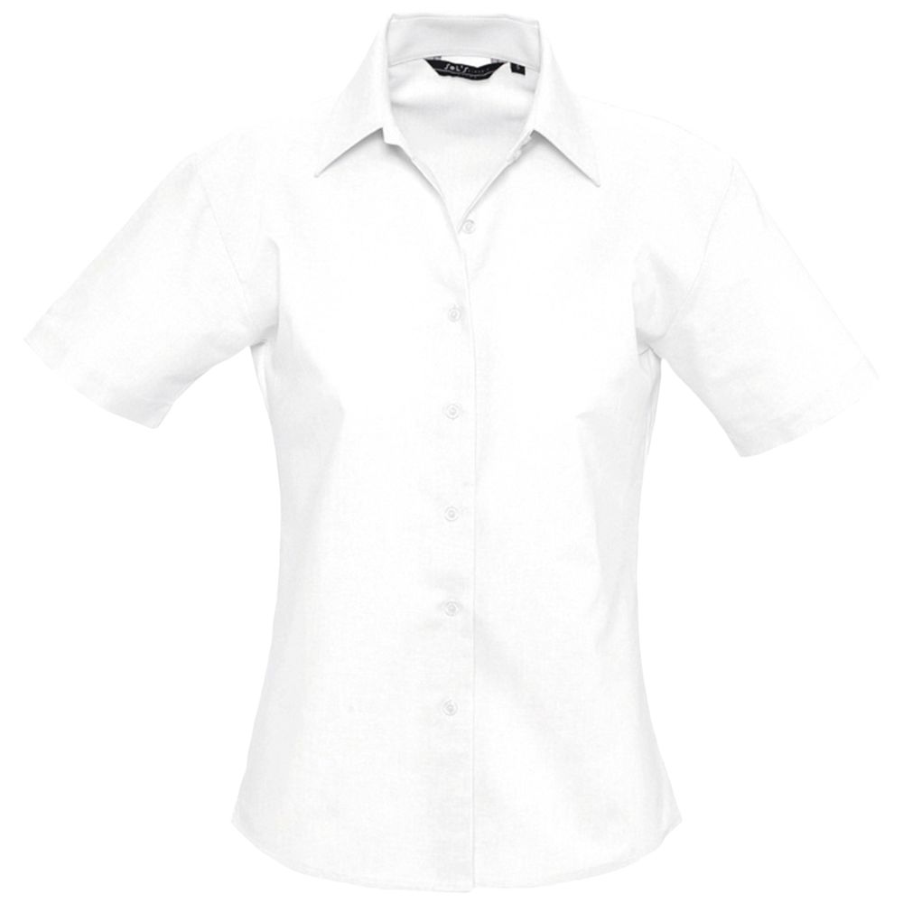 Рубашка из ткани «Оксфорд». Вытачки на груди, классический воротник, планка с семью пуговицами в тон.