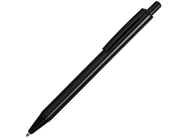 Металлическая ручка в минималистичном дизайне, сочетающим глянцевый корпус с черными деталями.
