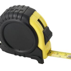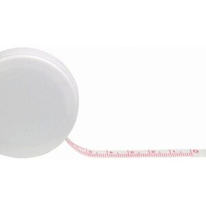 Рулетка длиной 1 м с возвратной пружиной и стопором со шкалой в сантиметрах и дюймах. Кнопка для фиксации ленты.