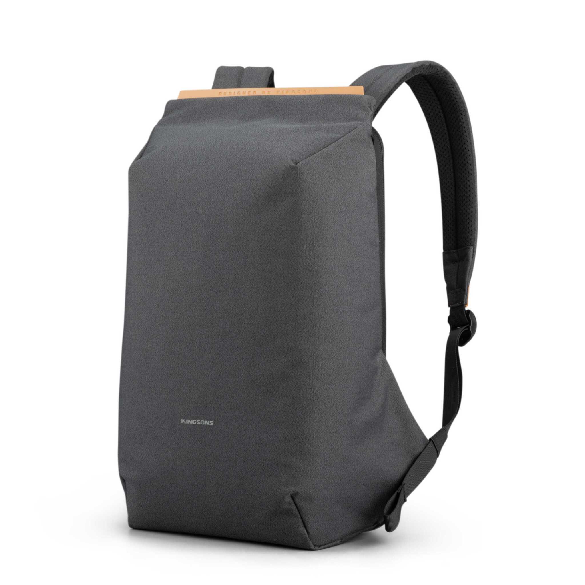 В рюкзак Kingsons KS3207W невозможно незаметно залезть. На внешней стороне нет ни карманов, ни видимых застежек. Молния, закрывающая отделение, спрятана от посторонних глаз. Открыть ее без согласия владельца не получится. Выполнен он в лаконичном дизайне и подойдет как к деловому стилю одежды, так и к повседневному. Сшит рюкзак из прочного полиэстера с жаккардовым плетением нитей, делающее ткань еще более износостойкой. Благодаря тому, что это водоотталкивающий материал, капли воды просто стекают с него, а значит содержимое просторного отделения останется сухим. Внутрь поместятся все необходимые вещи в повседневной жизни, в том числе ноутбук и планшет. В верхней части предусмотрена ручка, за которую его удобно не только носить, но и можно закреплять на выдвижной ручке чемодана. Для удобства зарядки гаджетов на ходу в месте крепления одной из лямок предусмотрен USB-порт, к которому необходимо предварительно подключить свой повербанк.