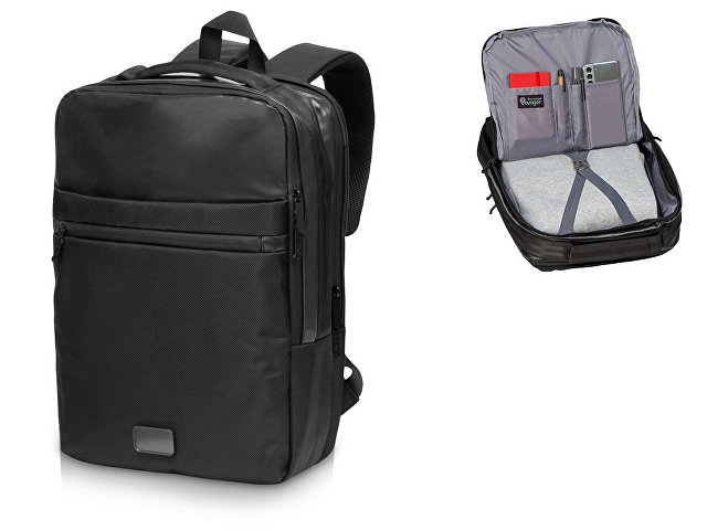 Удобный бизнес-рюкзак для передвижения по городу и деловых поездок состоит из отделения для ноутбука и планшета, большого отделения для одежды с фиксирующими ремнями, 2х наружных карманов на молнии спереди. Конструкция рюкзака продумана до мелочей: внутри большого отделения расположен органайзер для гаджетов и проводов, на спинке есть ремень для крепления на ручку чемодана и регулирующиеся по длине лямки, на лямке — карман для карт или ключей. Водостойкий материал и молнии. В комплекте мешок из спанбонда для хранения и металлический шильд под ваш логотип.