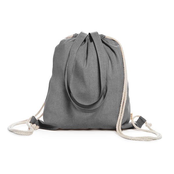 Сумка-рюкзак на завязках из 100% переработанного хлопка в крапинку, с подходящими ручками длиной 70 см и завязками натурального цвета. 140 г/м2.