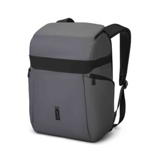 Изящный, современный рюкзак для ноутбука 15 » с большим передним карманом на молнии с карабином для ключей, и скрытым карманом с защитой RFID, чтобы защитить ваши карточки и паспорт от кражи личных данных. Большое основное отделение вмещает ноутбук 15″ и специальный карман для IPad или планшета. Передняя вертикальная молния разработана, чтобы дать вам быстрый доступ к переднему карману. 2 дополнительных боковых кармана для большего места, регулируемые, мягкие ремни рюкзака позволят прикрепить к ним дополнительные аксессуары. Ручка вверху и стропа для крепления к чемодану. Реальный цвет рюкзака может незначительно отличаться в зависимости от особенностей принта, окраски и структуры ткани. 600DПолиэстер.