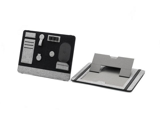 Помимо подставки для ноутбука, этот настольный органайзер оснащен подставкой для телефона с быстрой беспроводной зарядкой мощностью 15 Вт (регулируемой), планшетом для обмена, двумя магнитными док-станциями, держателем для ручек, держателем для карт, зажимом для кабеля и подставкой для телефона. Поддерживать порядок на рабочем столе еще никогда не было так просто!