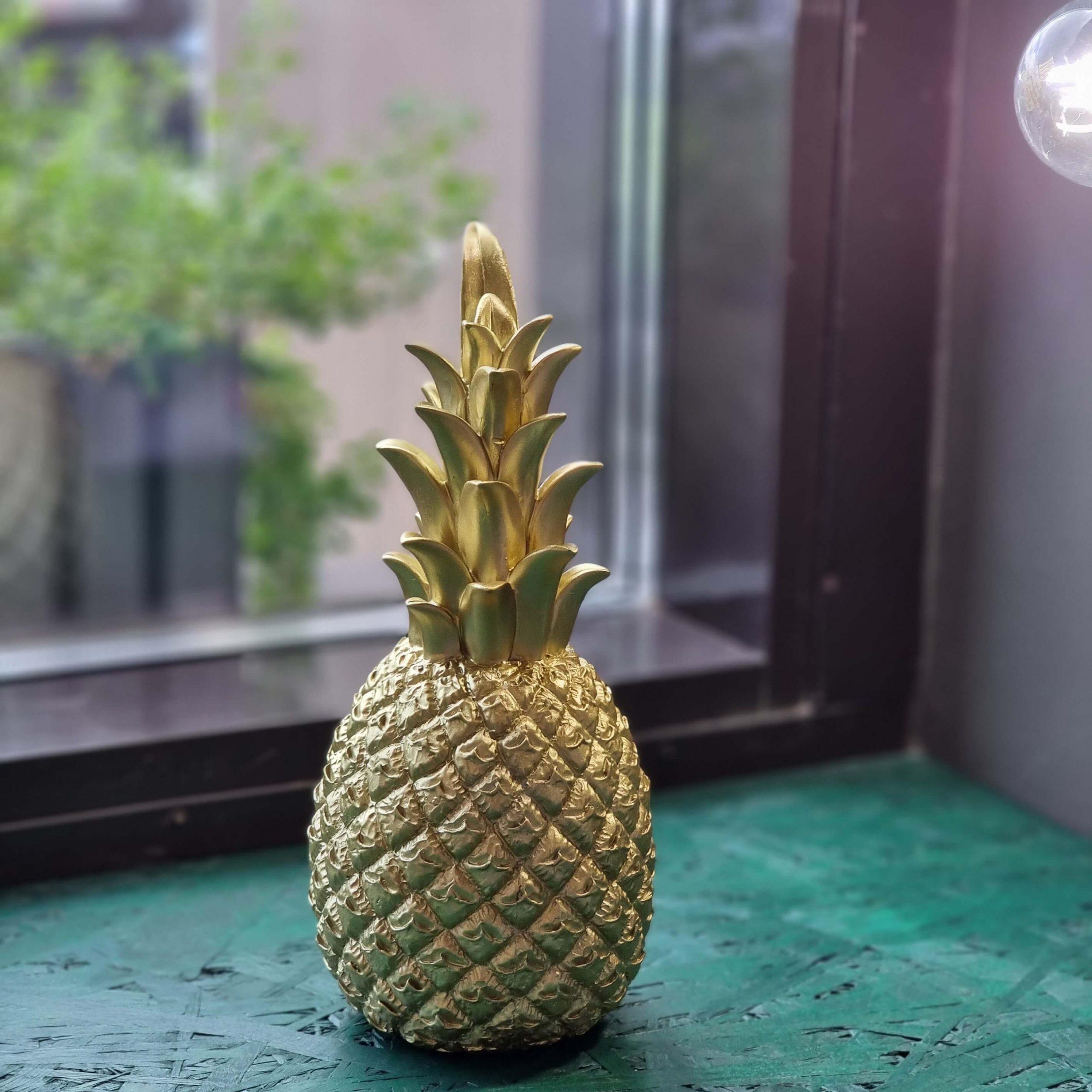 Золотой ананас — стильная вещица для украшения современного интерьера. Статуэтка сделана из современного полимерного материала, из которого производят прочные и долговечные изделия домашнего обихода. Стильная и оригинальная композиция «Золотой Ананас» станет прекрасным декоративным украшением для вашего интерьера! Этот простой предмет способен преобразить интерьер, создать уют и погрузить в особую атмосферу. Композиция прекрасно подойдет для декора любого интерьера, особенно в стиле модерн. Ее можно поставить в любом месте, где она будет удачно смотреться и радовать глаз. Кроме того, это отличный вариант подарка для ваших близких и друзей.