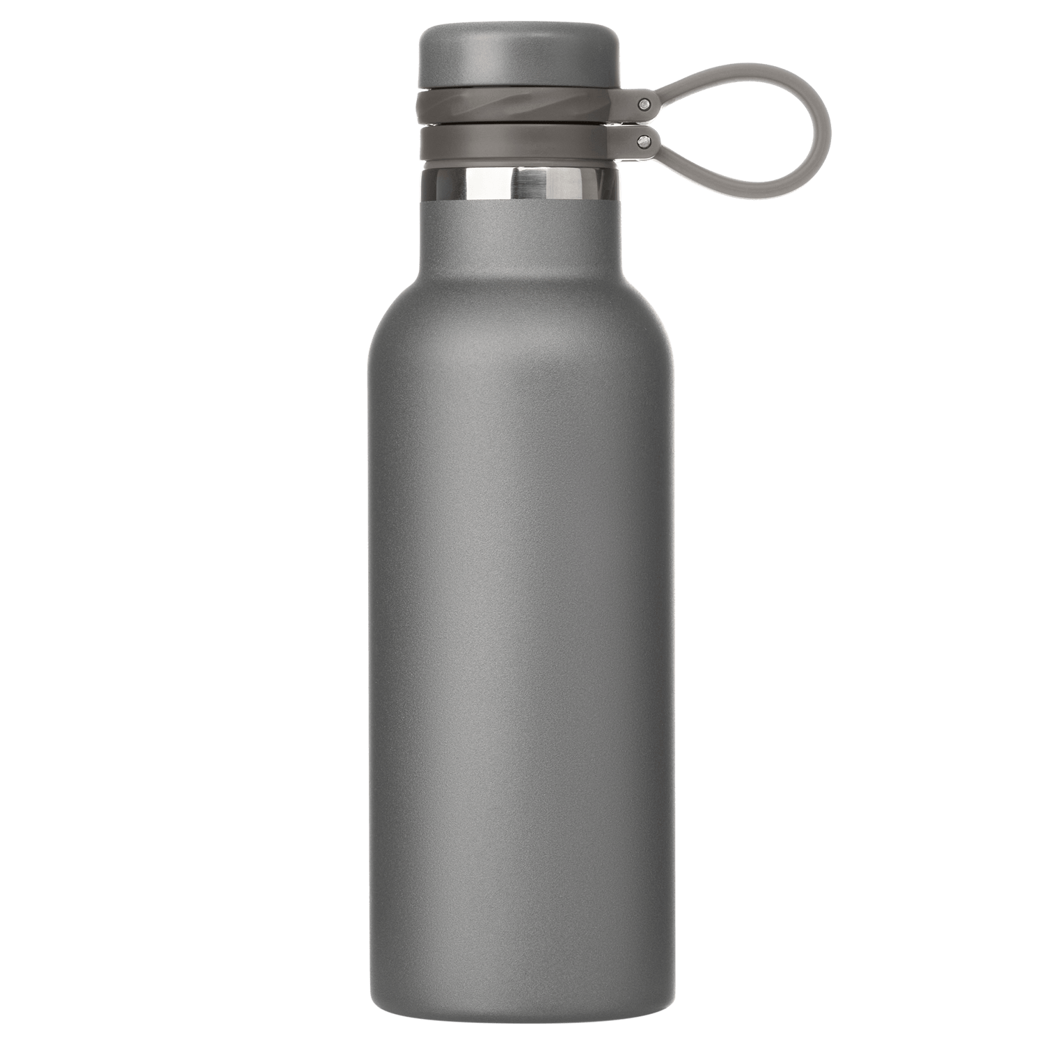 Вакуумная герметичная конструкция выполнена из двухслойной высоколегированной стали 304 марки, что делает конструкцию более прочной и устойчивой к мелким сколам и царапинам. Крышка из высококачественного пластика, оснащена удобной силиконовой петелькой для переноски. Бутылку можно переворачивать и класть в сумку.