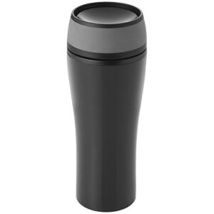 Термокружка совместима с большинством кофемашин, легко поместится в автомобильный подстаканник или велодержатель.