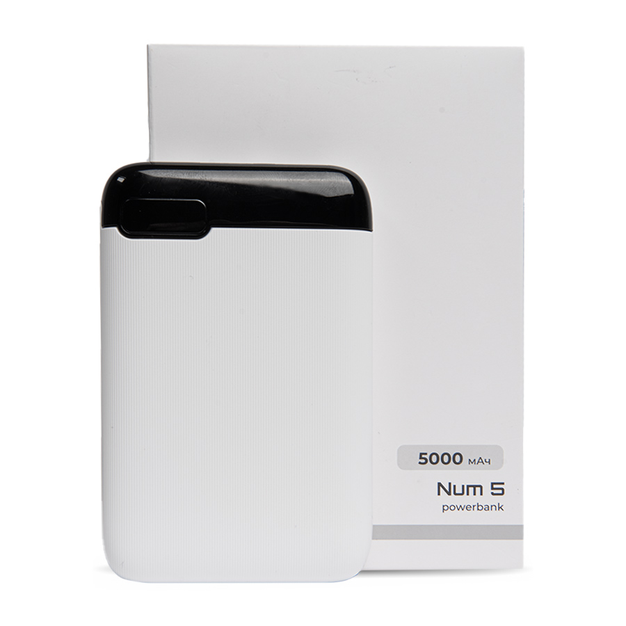 Универсальный аккумулятор Num 5 (5000 мАч), белый, 10,2х6.3х1,2 см