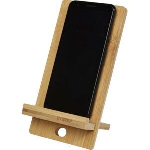 Удобная подставка для медиаустройств со встроенным усилителем звука и металлическим кольцом для ключей. Совместима с устройствами серии iPhone®.
