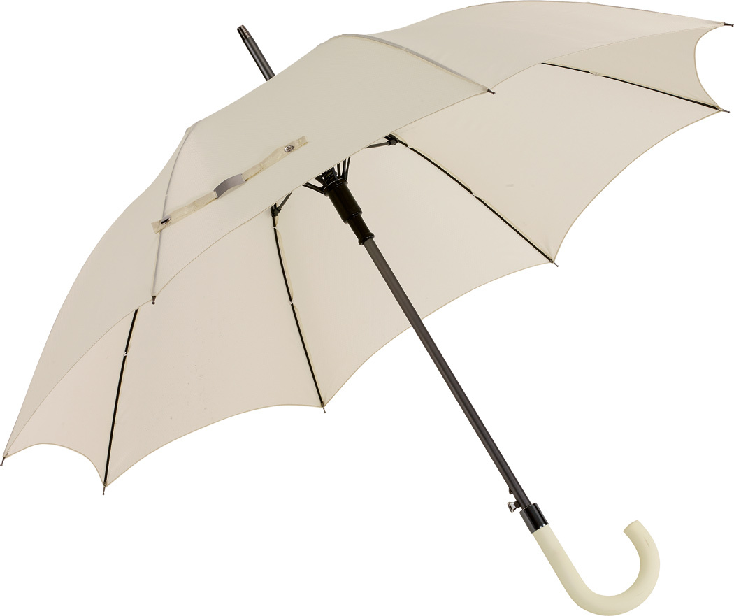 Автоматический зонт JUBILEE алюминиевый стержень, шины из стекловолокна, металлические наконечники подходящего цвета, закругленная ручка с резиновым покрытием, купол из полиэфирной ткани с чехлом с сотовой фактурой, стягивающий ремень с застежкой на кнопку и металлической пластиной для логотипа.